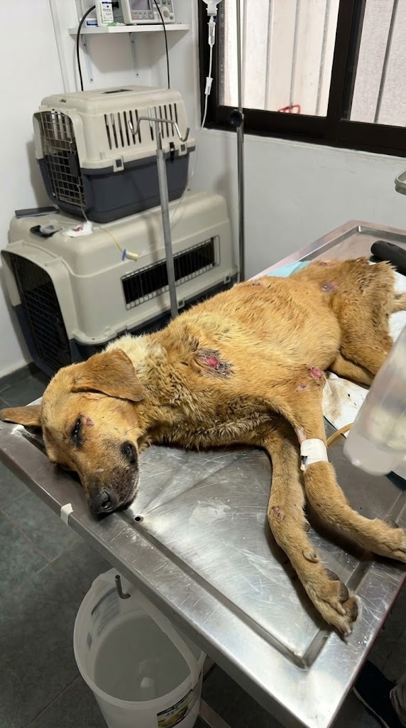 The volunteers quickly removed the heavy chain and rushed him to the nearest veterinary clinic. Time was working against them. Magma was critically weak, severely dehydrated, and suffering from a painful, untreated leg infection. His body had been so neglected that it barely had the strength to fight anymore.