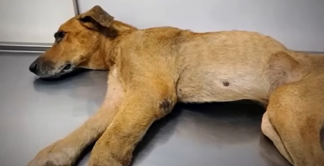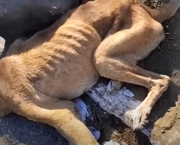 A group of rescuers received an urgent message about a dog tied up in a remote area, with no shelter, no water, and no food. When they arrived, their hearts sank. Magma could barely stand. His body was painfully thin, his ribs clearly visible beneath dull, tangled fur. Every step looked like it cost him everything he had left.