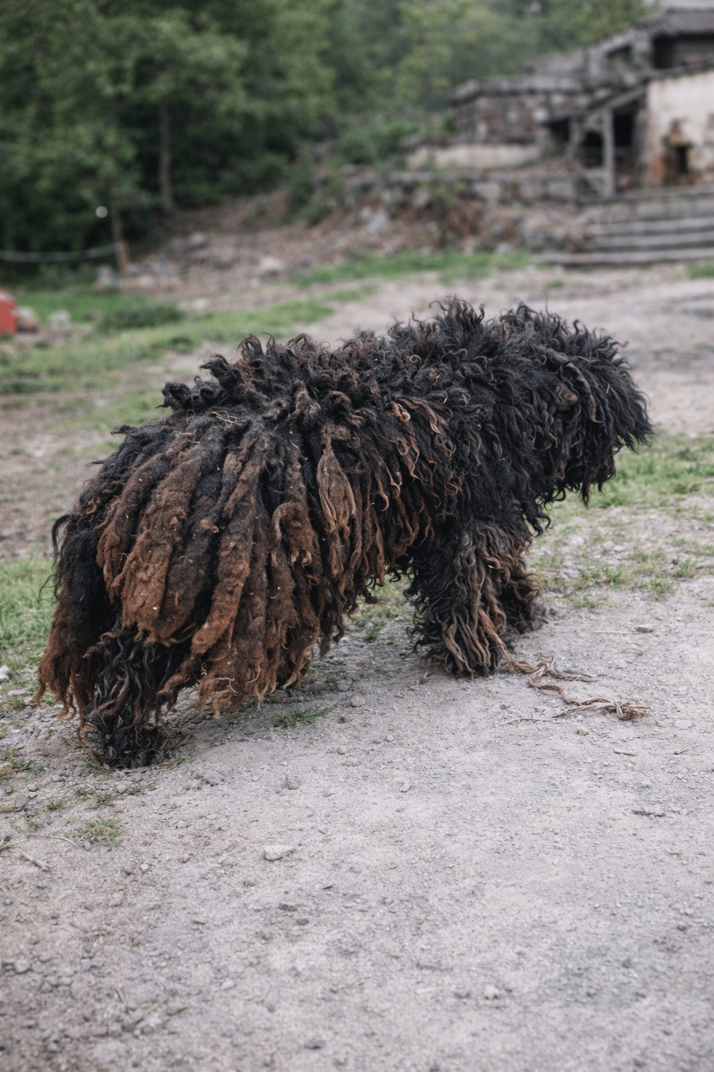 His coat had grown into thick, hardened mats — not just unkempt, but painfully tight. The fur had twisted into heavy clumps that pulled constantly at his skin.