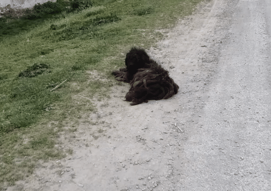 From afar, he didn’t even look like a living creature — just a dark, tangled mass. But as someone drew closer, the truth became clear.
