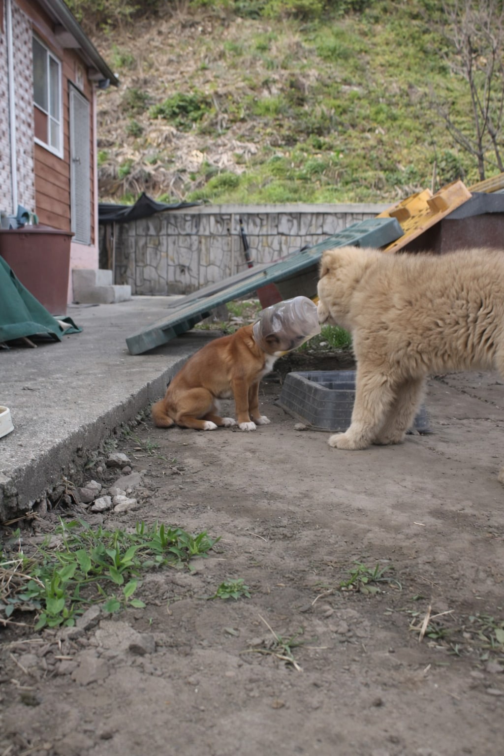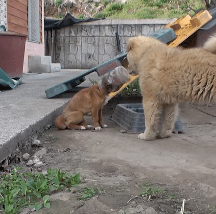 Not far away, another dog lingered.