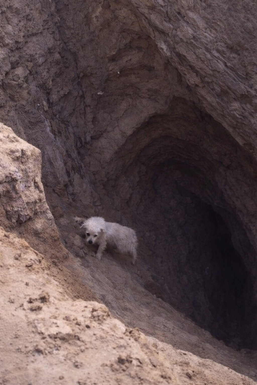 There was no time to react. One misstep at a construction site was all it took. The dog plunged into a narrow pit, more than 20 meters deep. The walls were steep, damp, and impossible to climb. At the bottom, he curled in on himself, shaking, confused by the silence and the sudden loss of the world he knew above.