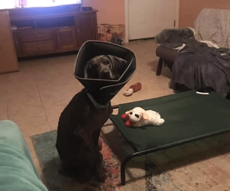 A cone around his neck.