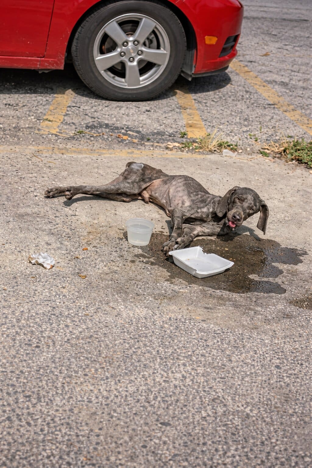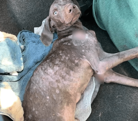 His body was severely underweight, every rib visible. His breathing came in shallow, uneven waves. One of his front legs was badly injured, bent unnaturally—making even the slightest movement nearly impossible.