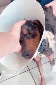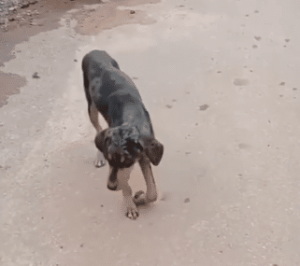 Through the wet streets, a dog kept moving—slowly, carefully… painfully.