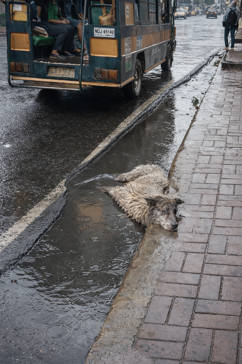 The collision left him badly hurt. Unable to stand or move properly, Borgie collapsed beside the road, half-submerged in a shallow puddle. Rain continued to fall through the night, soaking his fragile body as he curled tightly against the ground in pain.