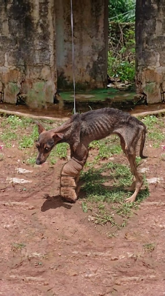 Without food, without care, his strength slowly disappeared. Bones pressed sharply beneath his fur. His eyes dulled. And the pain—constant and unforgiving—only grew worse.