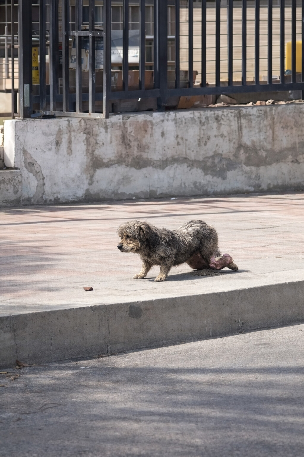 He pulled himself forward across the street using only his front legs—slowly, painfully, inch by inch. His back legs no longer helped him at all. But somehow, he kept moving anyway.