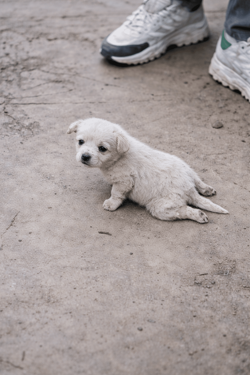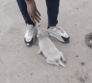 To get anywhere, he relied only on his front paws — dragging the rest of his body behind him. Each push forward scraped his knees against the concrete. The skin was raw. His body was painfully thin. Every movement cost him effort.