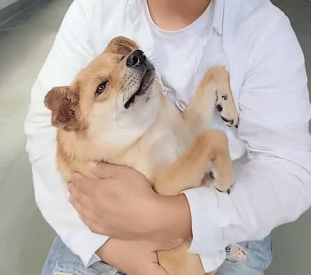 His owner kneels next to him often — offering soft praise, gentle touches, quiet affection.