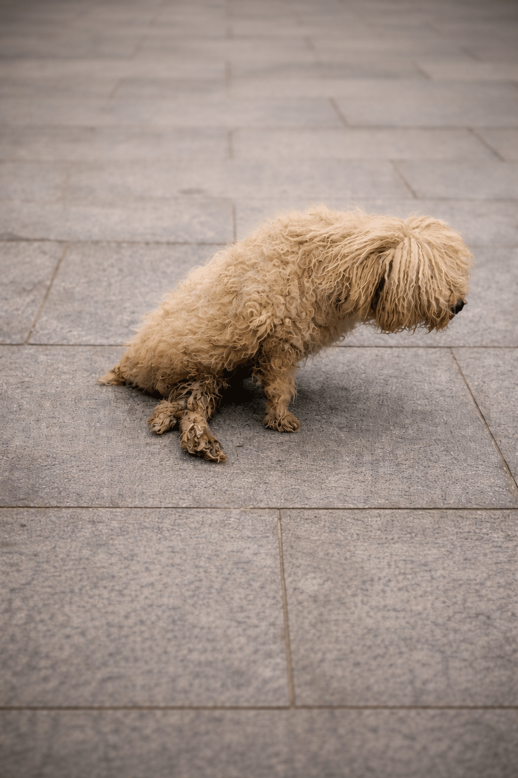 His long, tangled fur wrapped around his tiny frame like a heavy blanket, hiding how thin and fragile he had become beneath it.