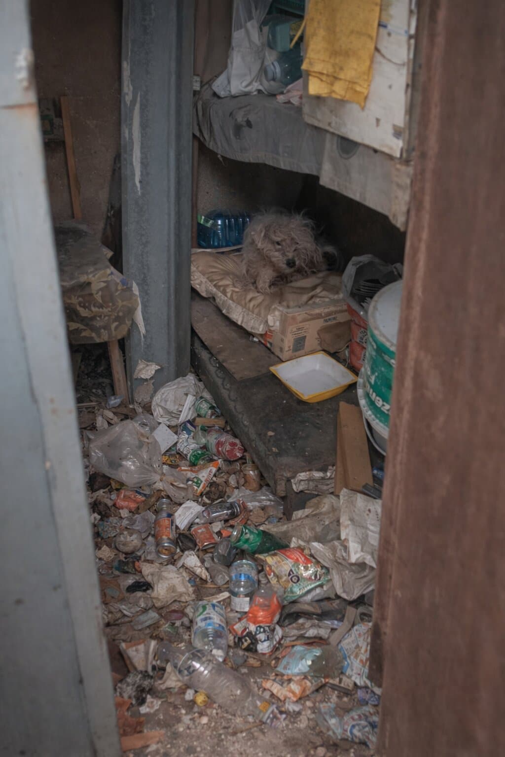 For weeks, he survived inside a cramped, makeshift shed — the kind of place no living creature should ever be forced to call home.