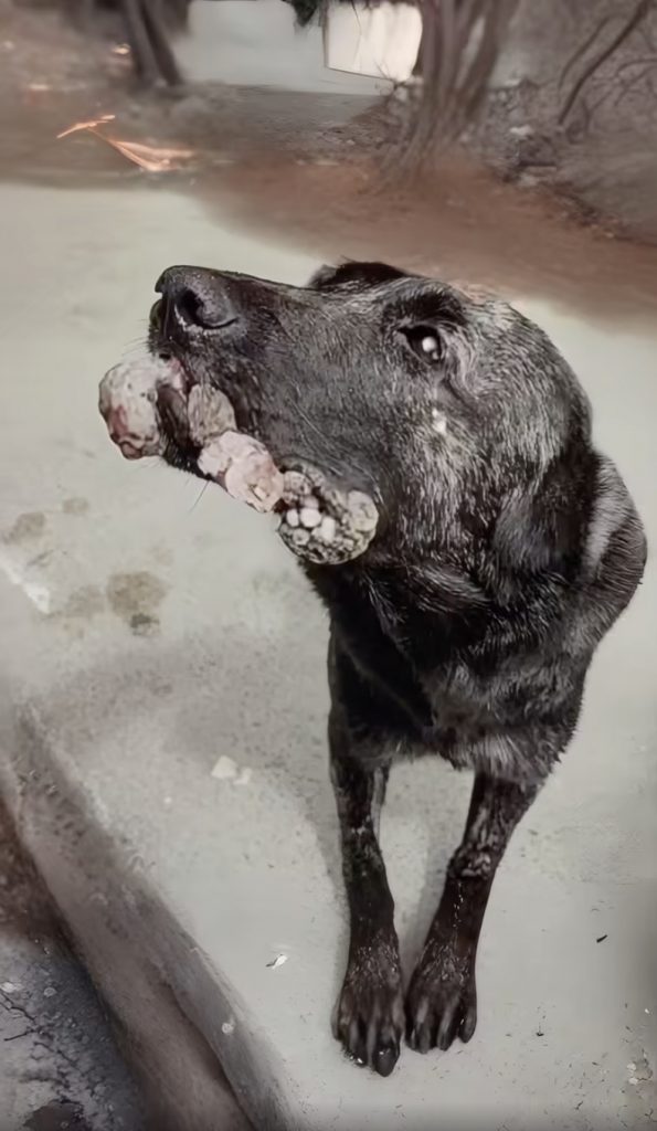 She saw a small dog walking alone through busy streets. His face was badly swollen, deformed by thick growths around his mouth. Eating seemed impossible. Drool streamed constantly as people passed him without a second glance.