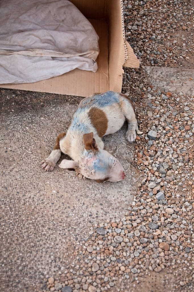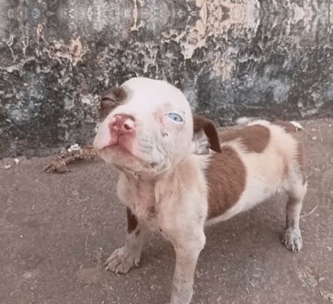Bones pressed against fragile skin, covered only by uneven patches of fur. Small wounds dotted his body—signs of neglect that had lasted far longer than a single day.