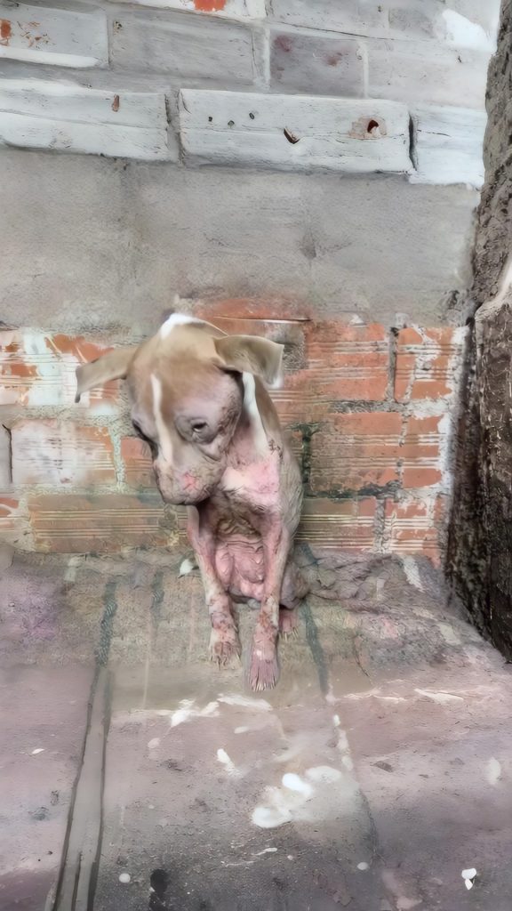He lay beside a rough concrete wall, still enough to blend into the background. His weight had fallen away, leaving sharp lines beneath dull fur. Hunger had worked slowly, patiently, until standing felt unnecessary and hope felt impractical. The street had stripped life down to its barest function: endure, or don’t.