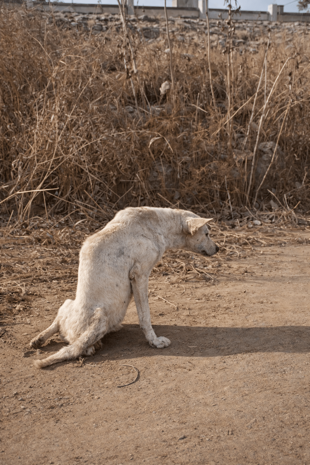The broken street dog is gone.