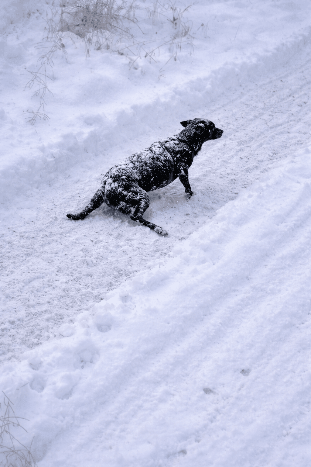 On a bitterly cold day, he lay in the snow.
