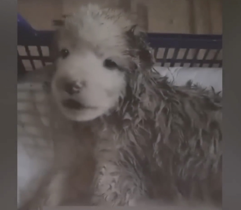 On a cold, stormy afternoon, a tiny puppy lay curled up beside a muddy road, soaked through and barely moving. He was only a few weeks old—too young to be alone, too weak to survive on his own.