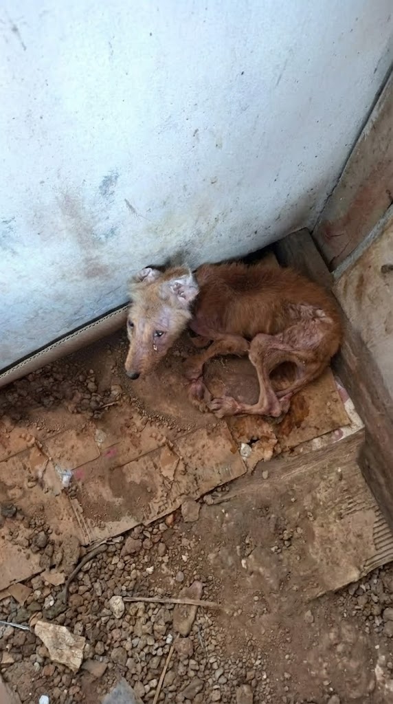 Tres was dangerously underweight. His fur was thin and lifeless, barely clinging to a body that had endured unimaginable neglect. His legs bore deep, painful marks from being tied for far too long. One paw was badly injured—swollen, sensitive, and barely usable.