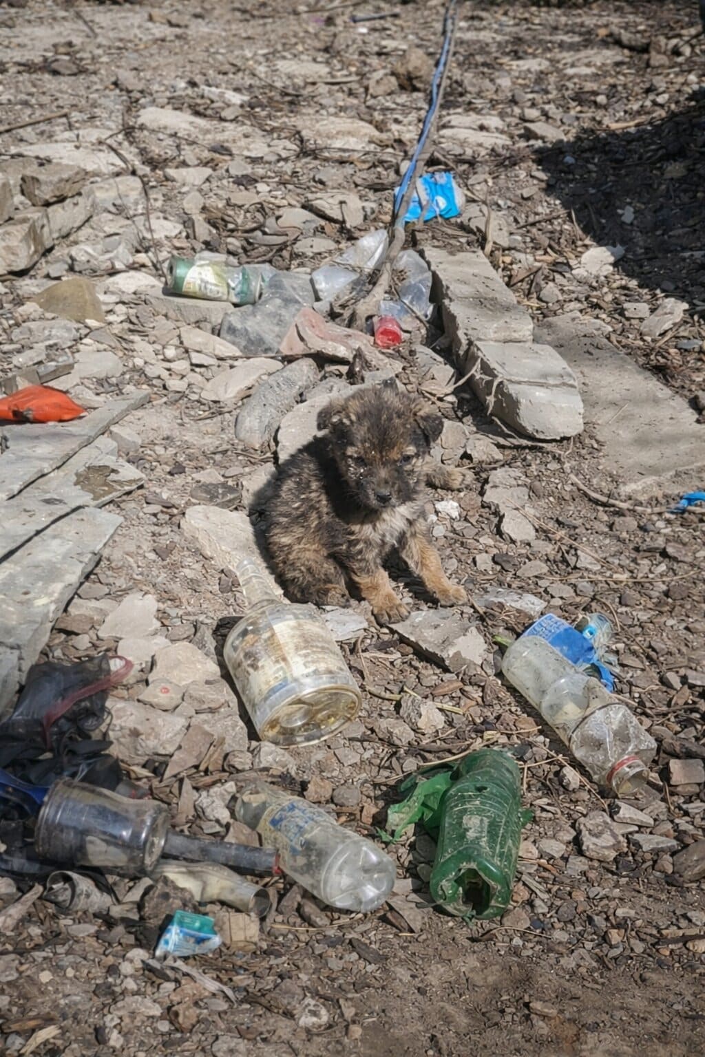 Just a ripped, weathered cardboard box… abandoned in the middle of a filthy dumping site.