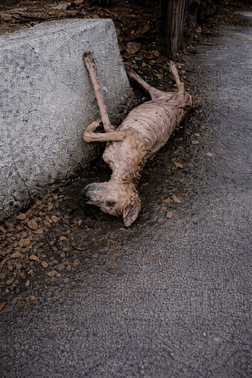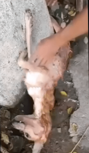 His frame told the story before anyone spoke. Ribs pressed sharply against thinning skin. His hips jutted out. His legs looked like brittle sticks that could snap under the slightest weight. Several open wounds covered his body, untreated and raw. One eye was terribly infected — swollen, clouded, and painful.