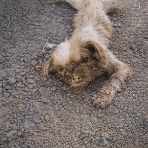 His body remained pressed against the pavement, too weak to lift, too tired to react. Each breath came slowly, as if it took everything he had left.