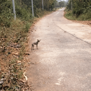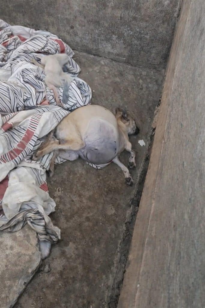 In a corner of a temple, where people came searching for peace, a small dog lay still.