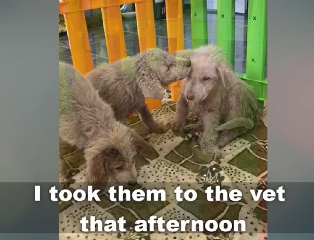 I carefully gathered all three puppies and rushed them to a nearby veterinary clinic.
