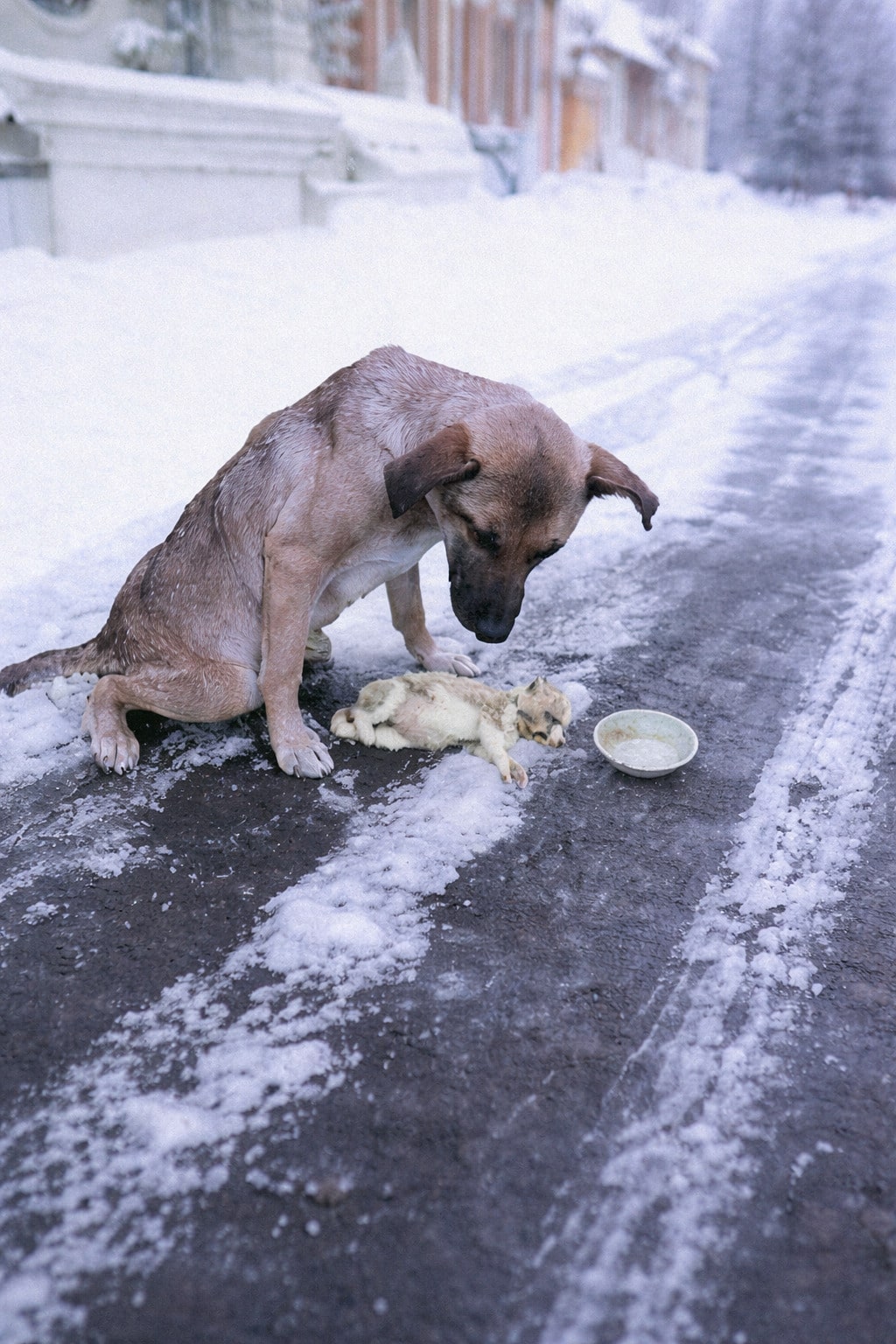 It happened on a bitter winter road. After a traffic accident, a mother dog—later named Alpha—was left behind in the snow.