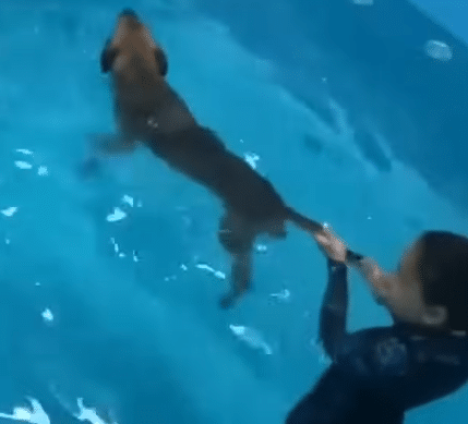 Rehabilitation started gently. With her spine still weak, Alpha began water therapy, where she could move without carrying her full weight.