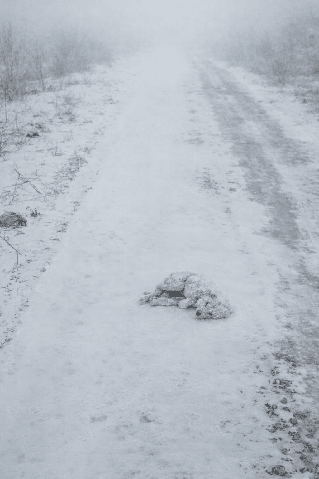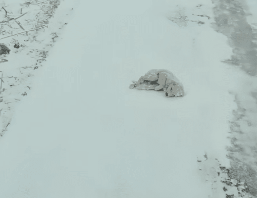 At first glance, it looked like nothing more than a small drift of snow sitting in the middle of the street.