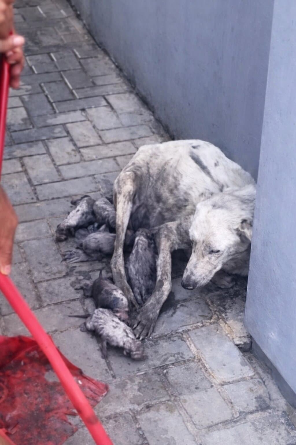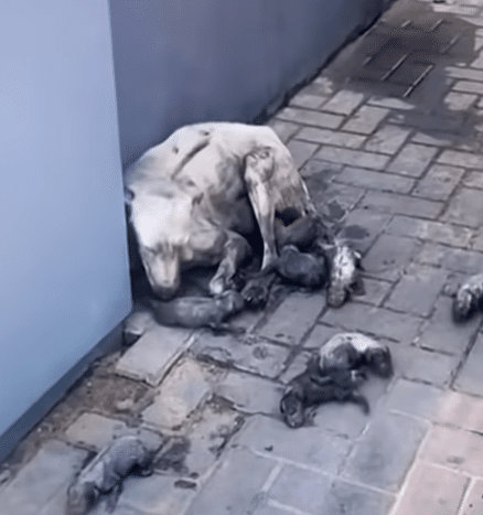 May this devoted mother and her puppies soon find the safety they deserve.