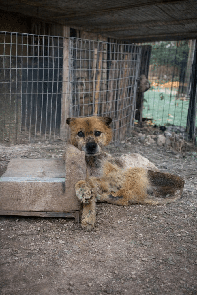 His body was painfully thin. His coat was patchy and dull. Every step he took was hesitant, as if unsure whether the ground beneath him would remain steady. Severe neglect had left him dangerously underweight; his ribs and spine were visible beneath fragile skin. It was clear that Leon hadn’t just been forgotten—he had been surviving on the bare minimum for far too long.