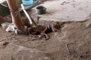 He was too weak to lift his head. Too exhausted to react. He didn’t bark. He didn’t struggle. He didn’t even try to move away when people approached.