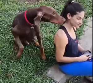 There, chained to a post, lay a Doberman so thin he barely looked real.