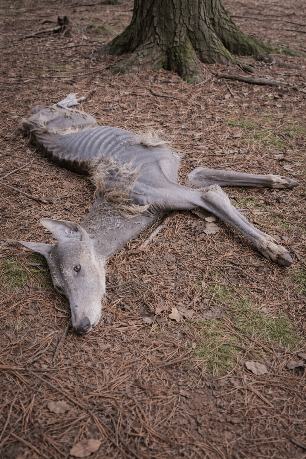 Deep in the stillness of the woods, a lone wolf lay collapsed among the leaves. His ribs showed sharply beneath his thinning coat. His chest rose and fell so faintly it was almost imperceptible. For a moment, it wasn’t even clear if he was alive.