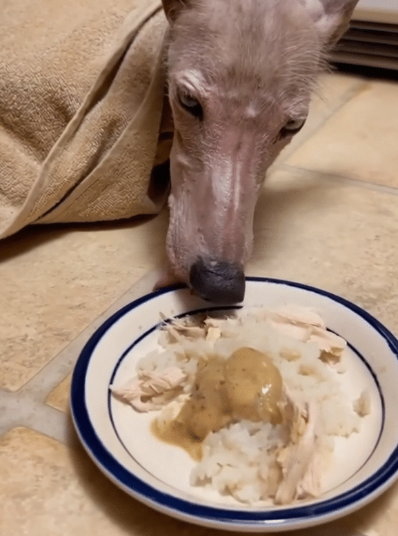 With nowhere else to turn, the man brought the wolf home. He prepared something simple and warm—rice and chicken—hoping scent and heat might stir an instinct to eat. At first, nothing happened.