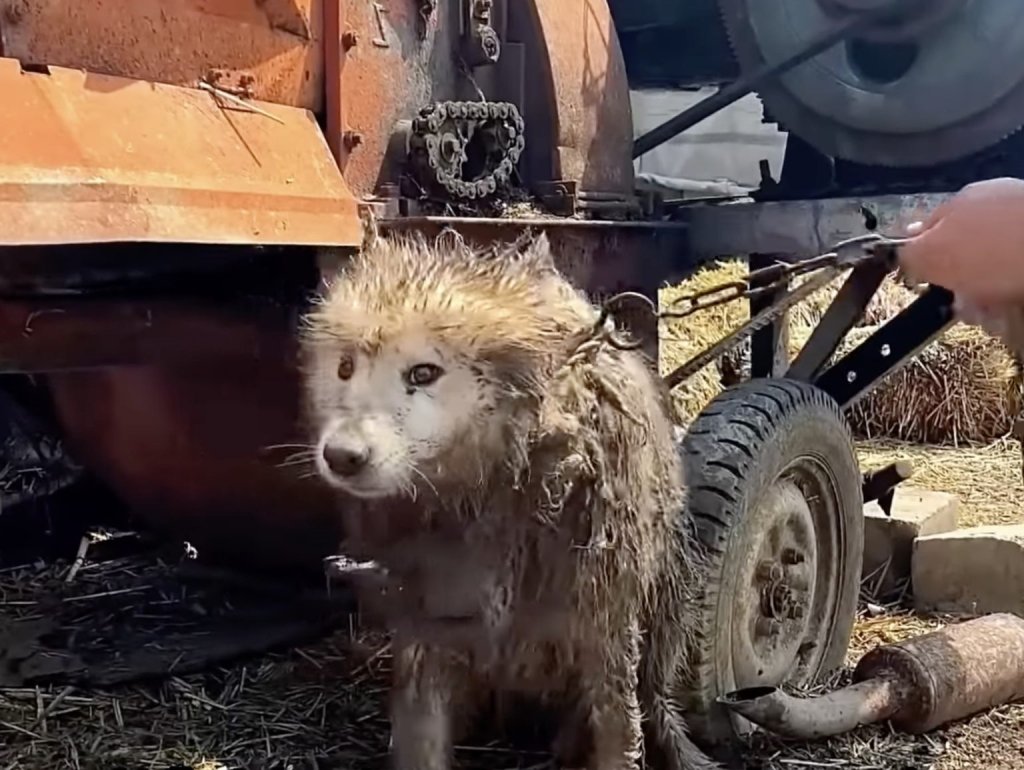 The chain dug deeply into his neck, swollen and infected from months of neglect. Dirt clung to his tangled fur, and his eyes—wide and trembling—told a story words never could. Every time he shifted, the chain tightened. Every soft sound from him carried confusion, pain, and heartbreak.