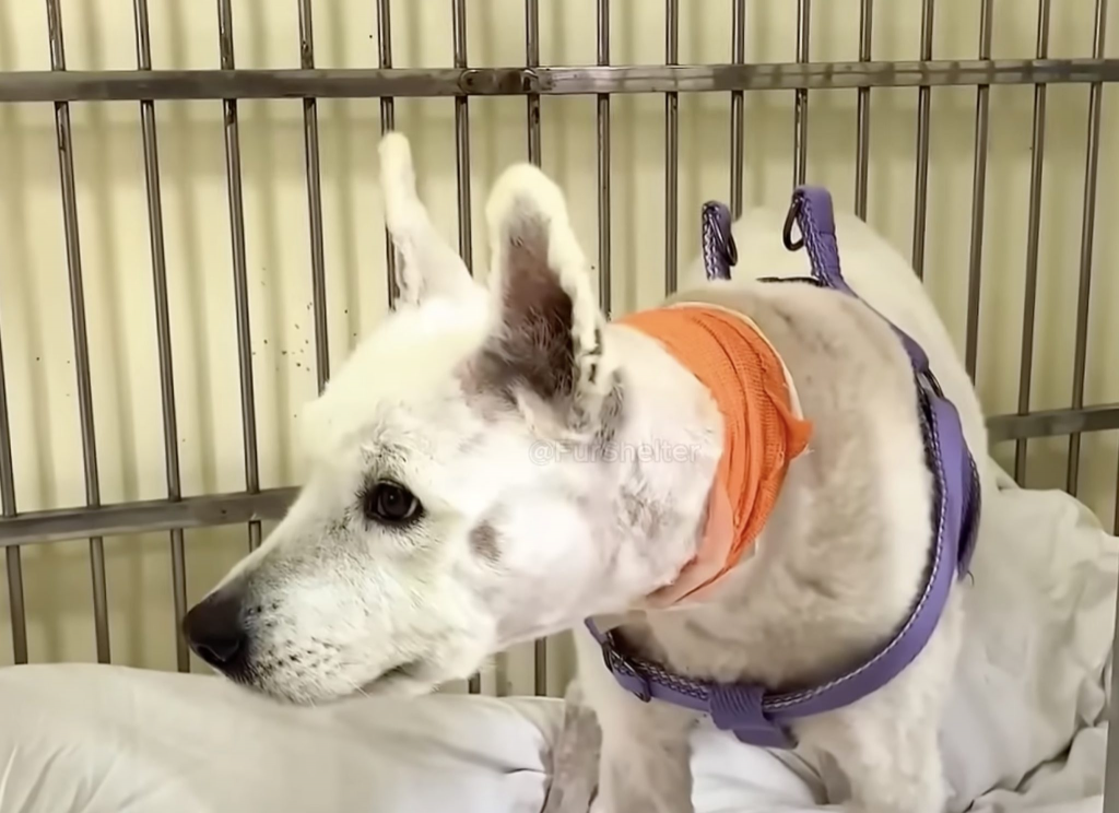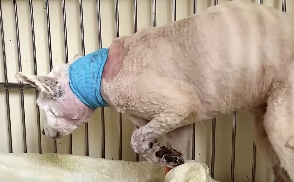 His tangled coat was carefully groomed, revealing bright white fur beneath. Each session became a moment of reassurance, not just care.