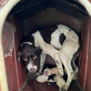 When the Storm Rolled In, She Stayed — Refusing to Abandon Her Newborn Puppies