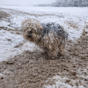 On a bitter winter day, when snow blanketed the world in silence, a tiny figure stood almost hidden against the endless white. It was a small Yorkshire…