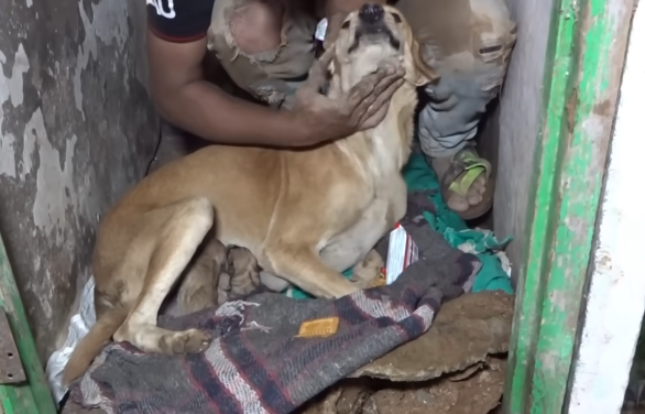 As each pup appeared, the mother dog rushed forward, sniffing and licking them, as if counting them with her nose—checking, comforting, making sure they were real.