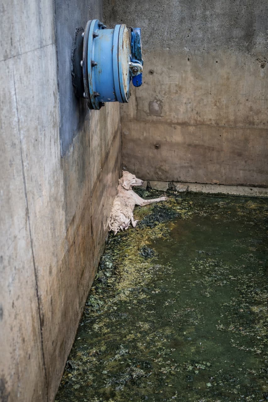 Slowly, he lowers the net into the drain. The puppy doesn’t fight. He doesn’t even try to move. He simply doesn’t have the strength left.