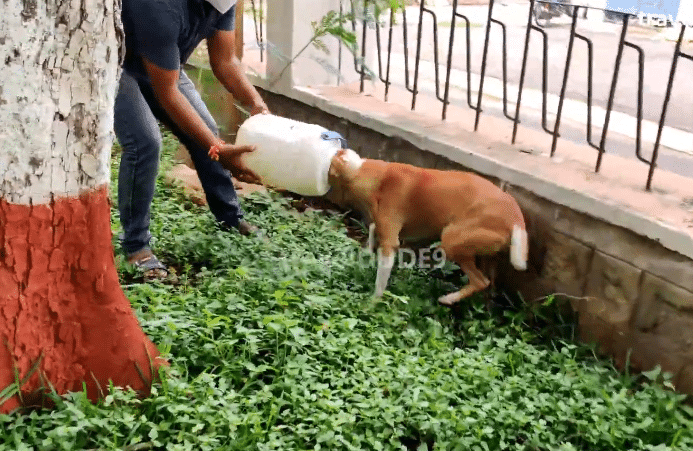 Video: Man Frees Dog After Plastic Bucket Gets Stuck on His Head