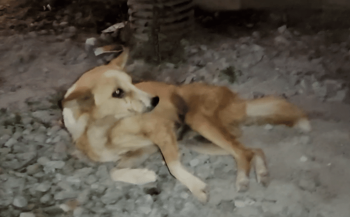 Her body was painfully thin, her legs shaky even when she attempted the smallest movement. Whatever she had endured — illness, injury, or prolonged neglect — had drained nearly all her strength. Even lifting her head seemed like an effort.