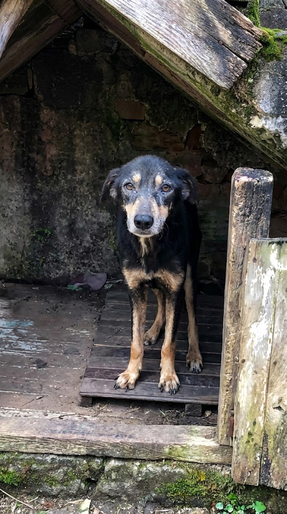 A concerned neighbor contacted us about a dog who had been living out of sight for years. When we followed them to the location, we were led beneath a narrow staircase. The air was damp. The ground was cold. No breeze, no sunlight—only the heavy smell of neglect.