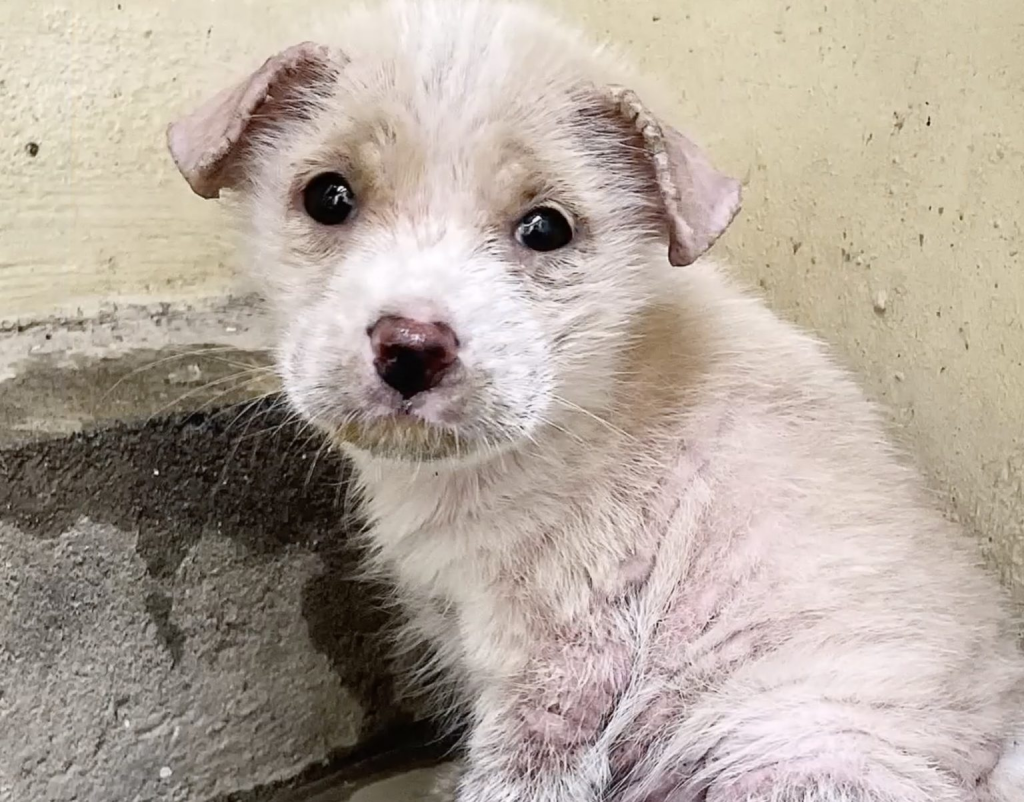 And against a gray concrete wall, nearly invisible to everyone, sat a tiny puppy.