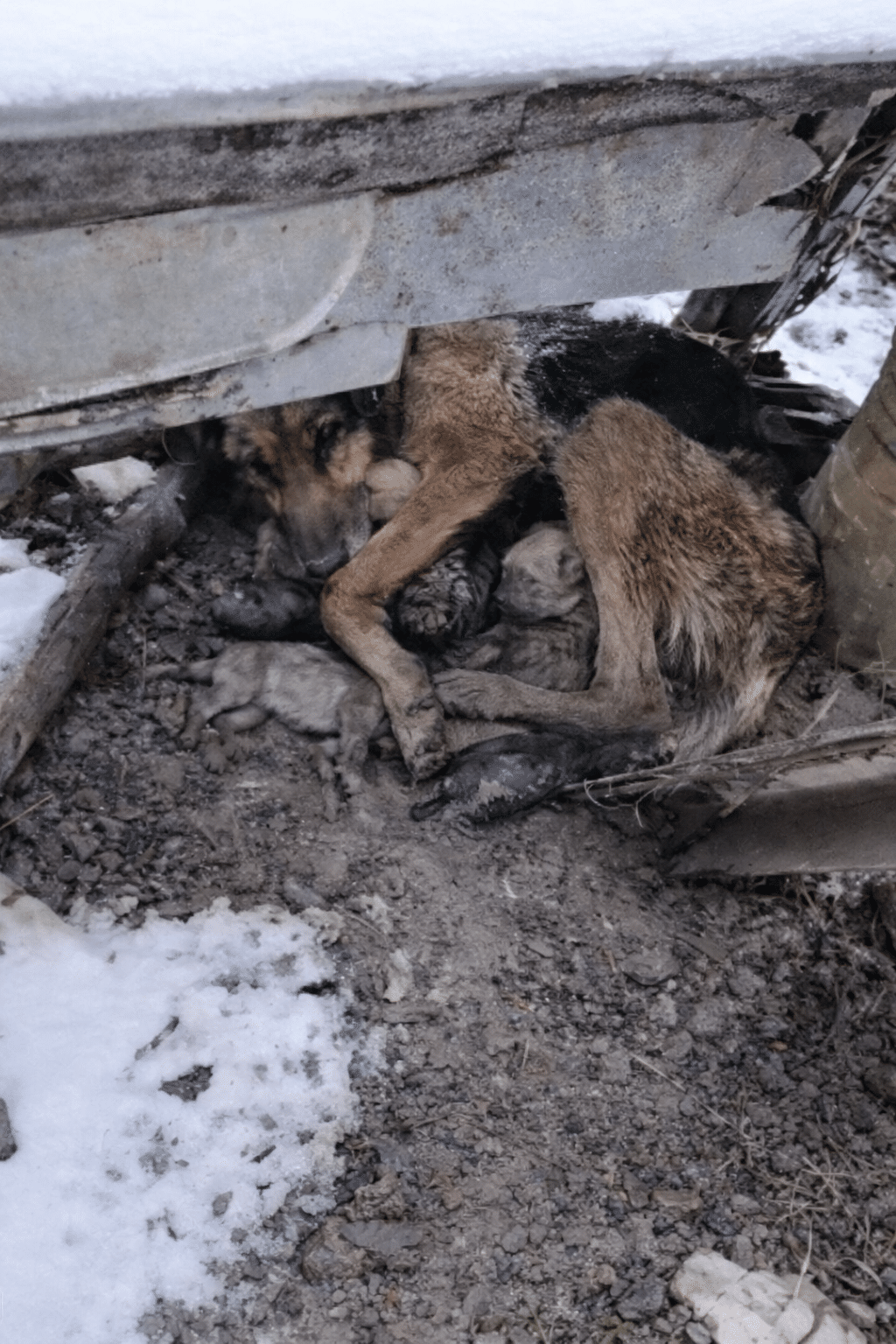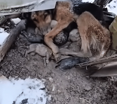 Video: A Pregnant German Shepherd Abandoned in the Snow Gives Birth Under Debris