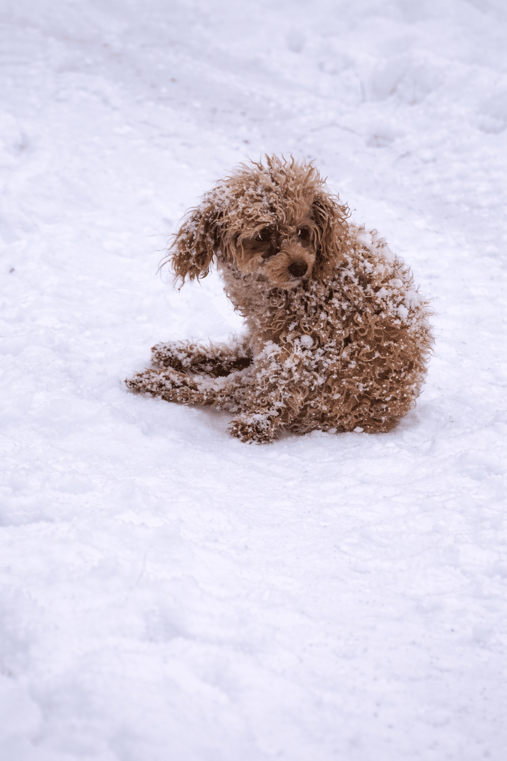 A small dog, shaking violently, her body pressed low against the icy ground as she pulled herself forward.