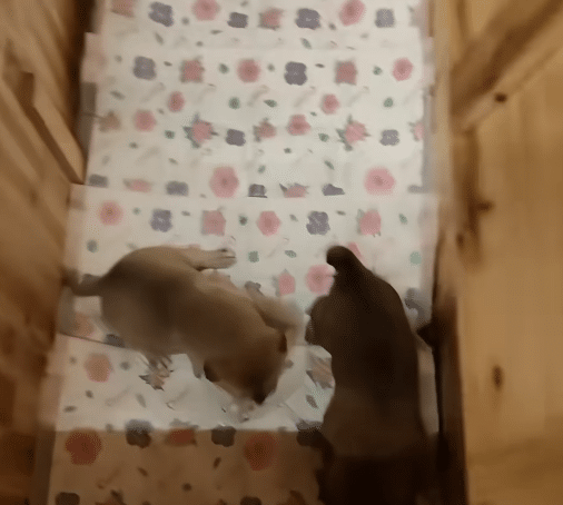 The puppies, now stronger and rounder, immediately began exploring their new world with playful curiosity.